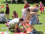 Wir hatten nur sehr wenig Zeit zur Verfügung und rechneten mit etwa 10-15 Kindern. Plötzlich kamen aus allen Himmelsrichtungen Kinder angelaufen und im Nu waren die 60 Drachen verteilt. Mit unglaublicher Freude rannten diese Kinder mit ihren Drachen über den Sportplatz.